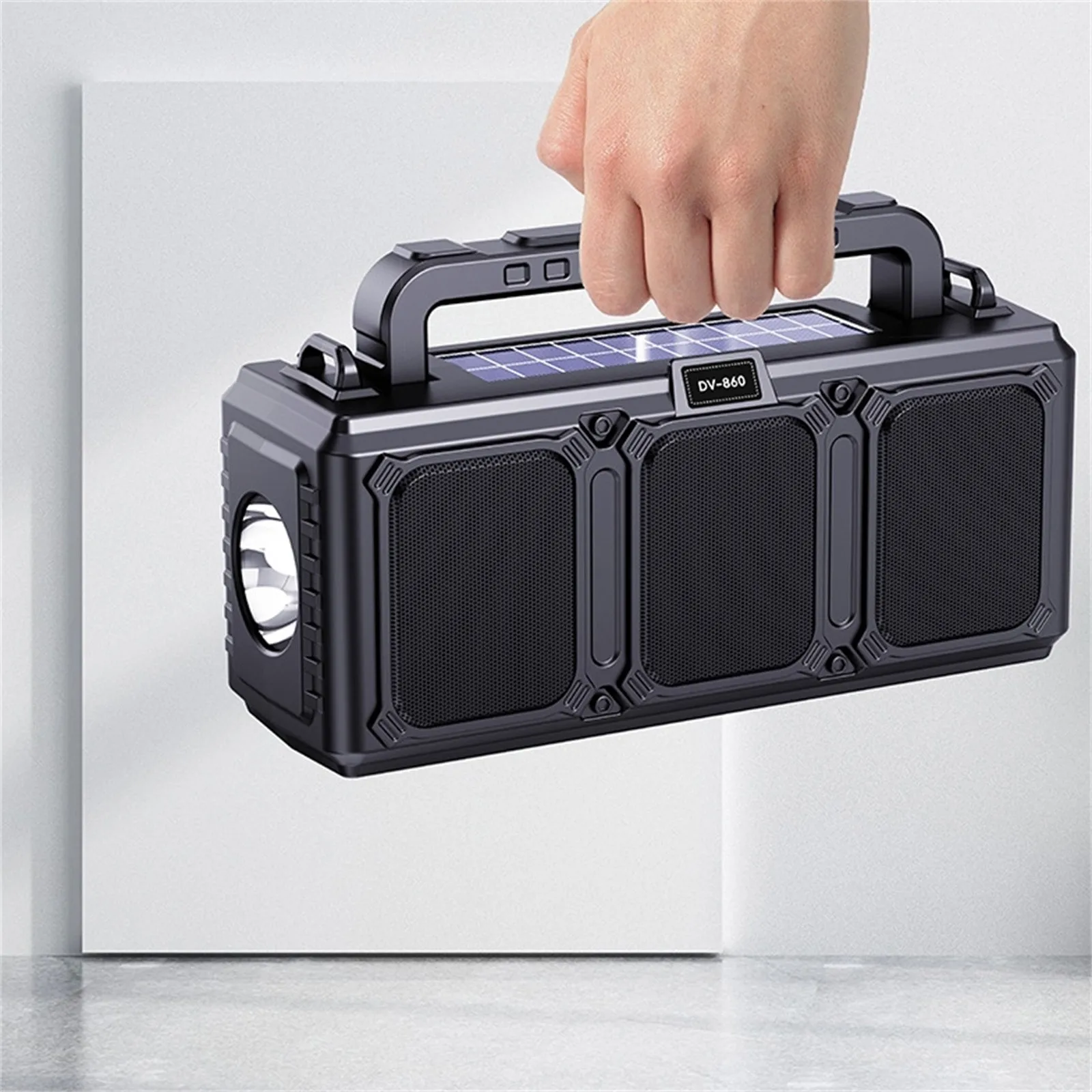 Flashlight Bluetooth Speaker,Outdoor Speaker Convenient Dual Solar Radio, Wireless Card Insertion Handheld Speaker